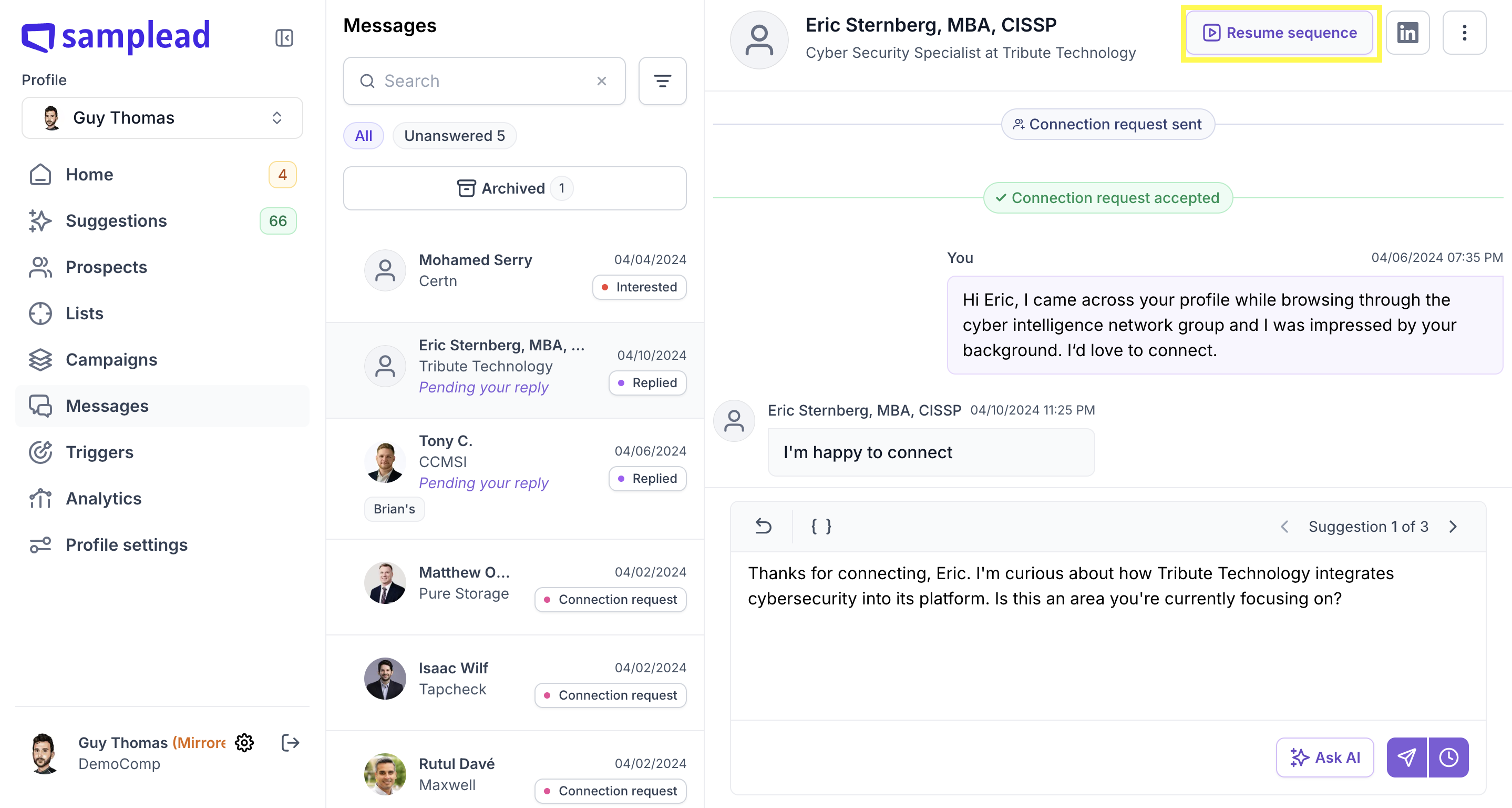 When a prospect replies, Samplead stops all automation to avoid robotic follow-ups. To re-engage them with a new sequence, follow these steps.